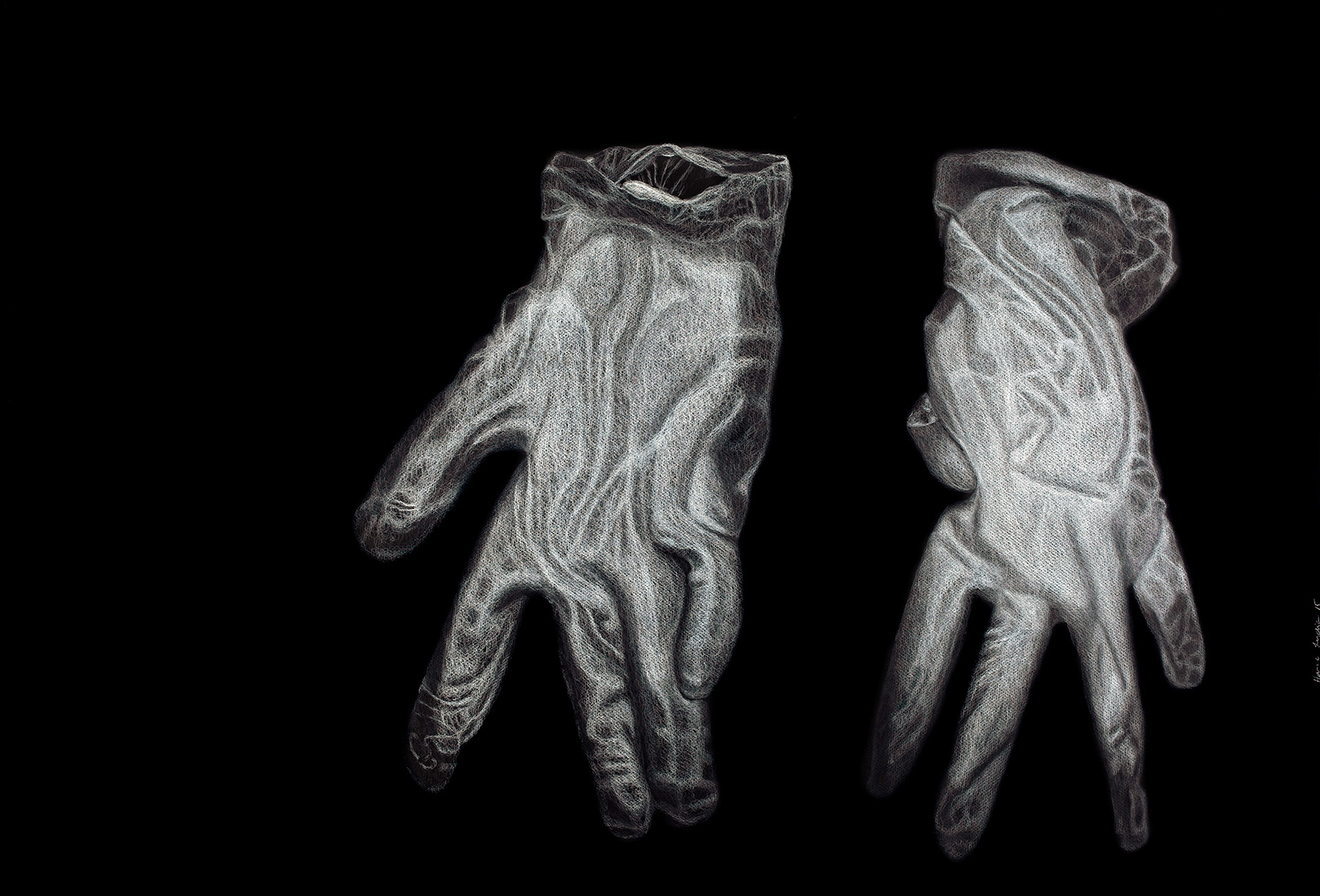 The_Gloves, coloured pencils on black paper, H: 75 cm, W: 110 cm, 2015.