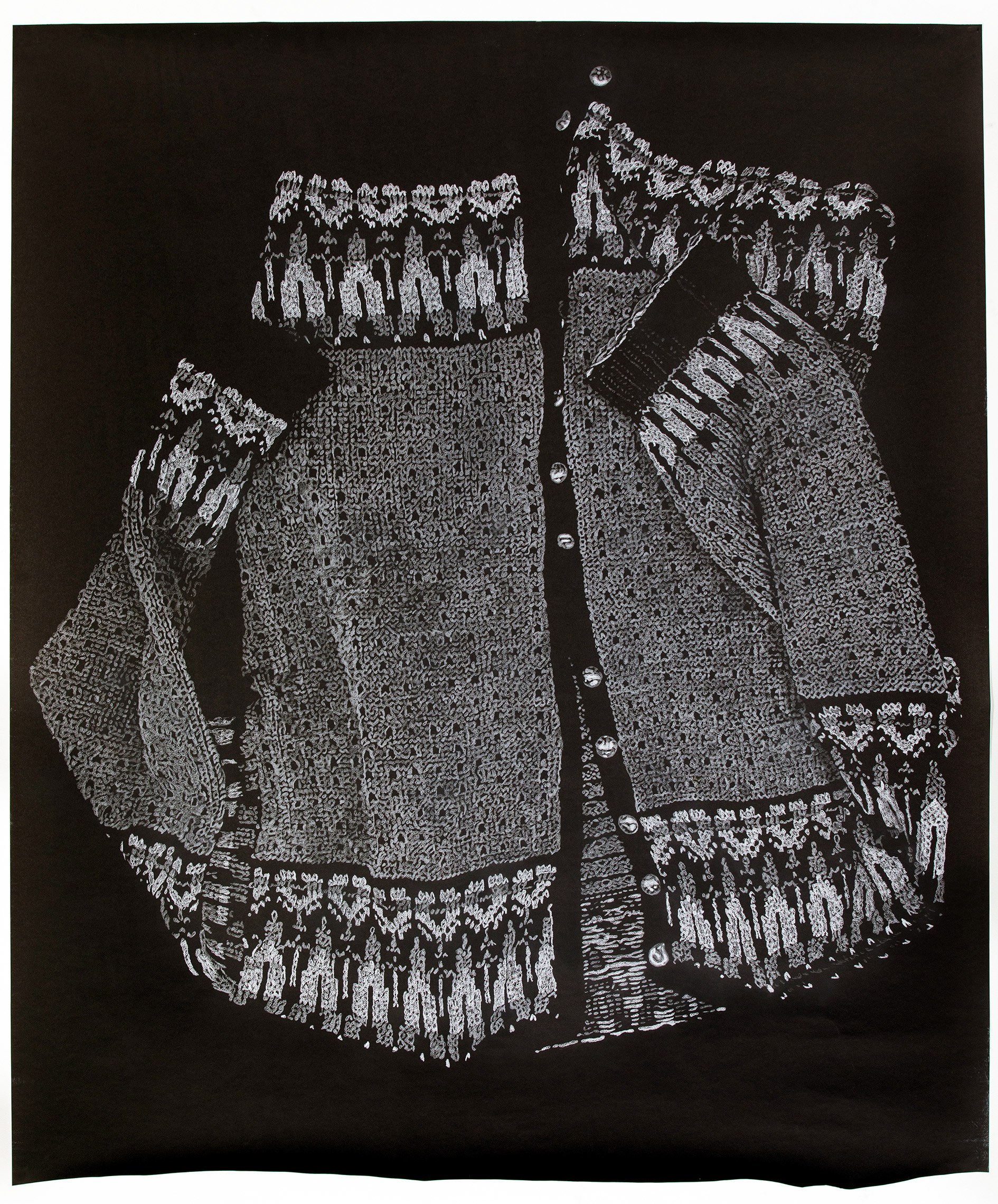 SKIN, coloured pencils on black paper, H: ca 209 cm, W: 152 cm, 2018.
