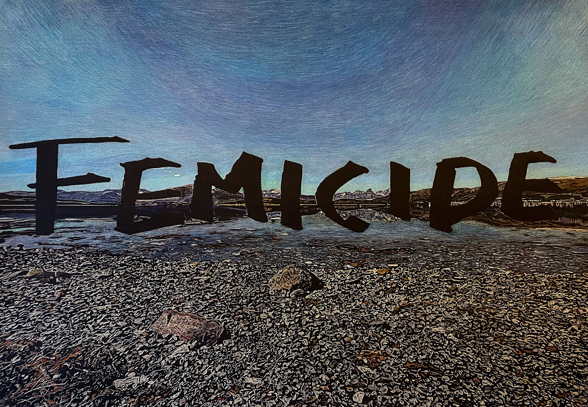 StormyProtestShame, coloured pencils on black paper, 75 x 110 cm, 2024.