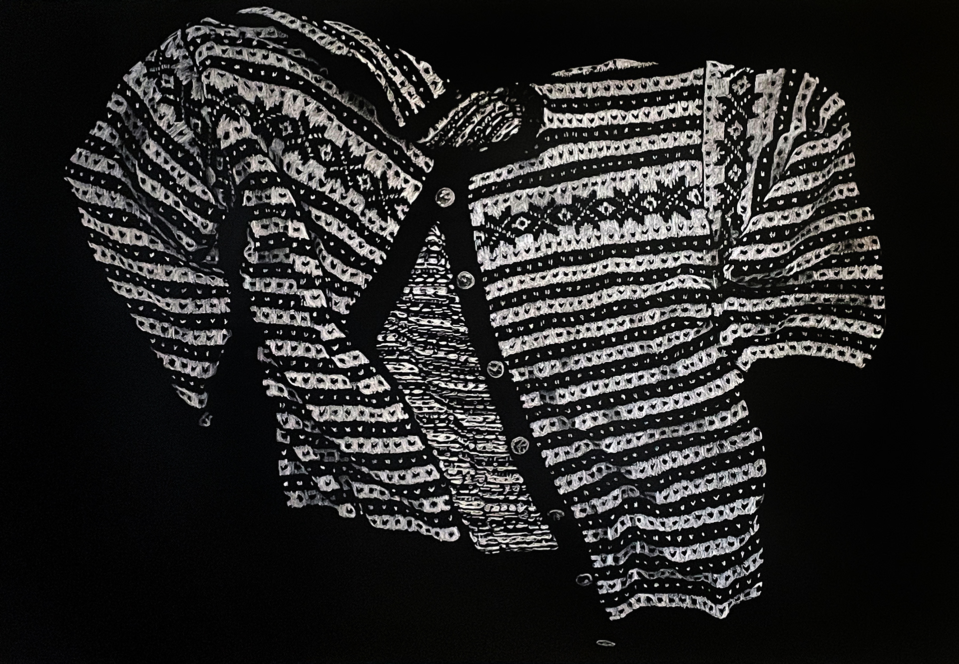 DIDShame, coloured pencils on black paper, 75 x 110 cm, 2024.