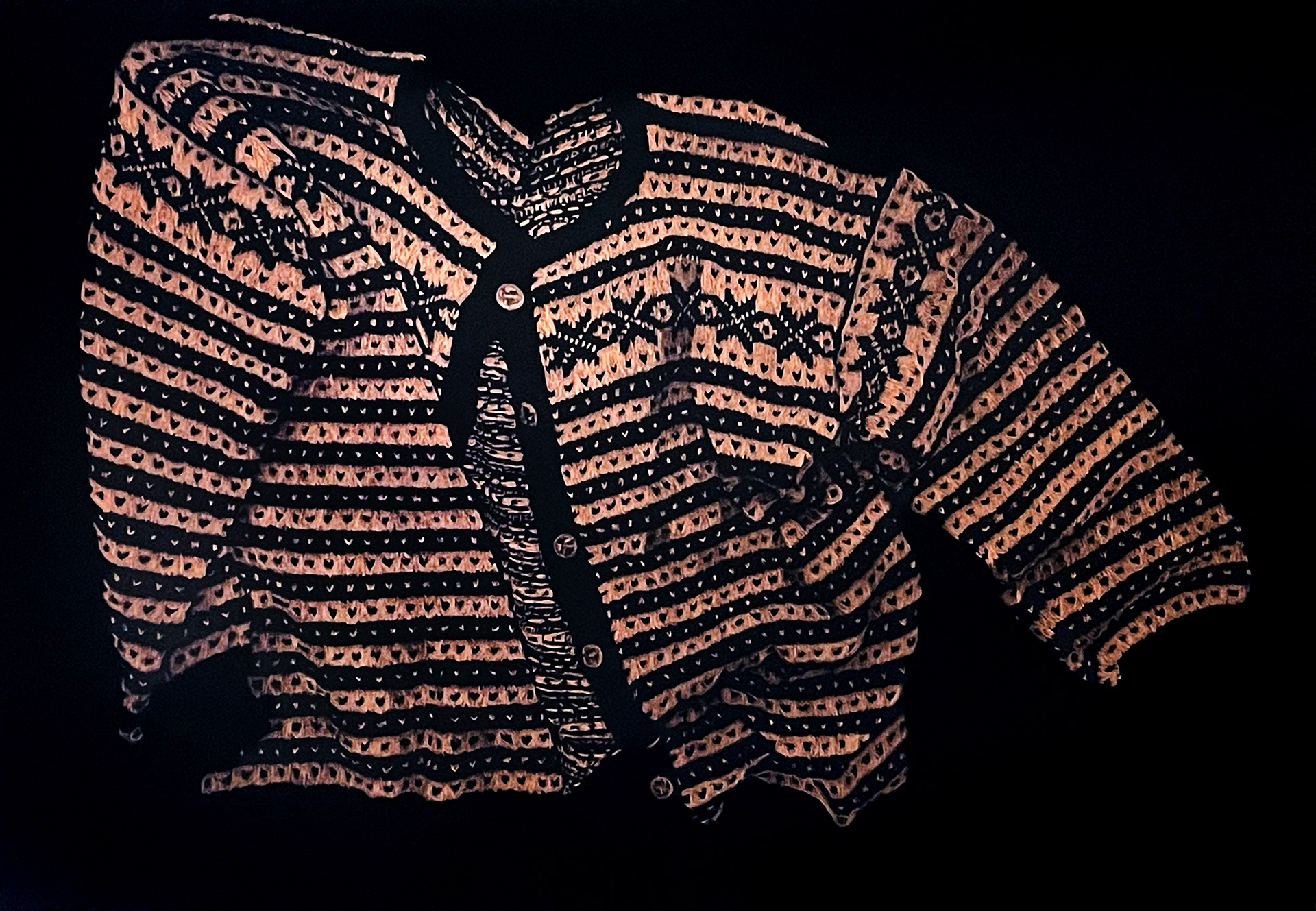 Beyond Happiness, coloured pencils on black paper, 75 x 110 cm, 2024.